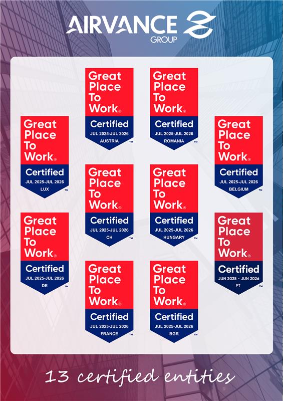 Le Groupe AIRVANCE est fier d’annoncer que 13 de ses filiales ont obtenu la certification Great Place to Work.