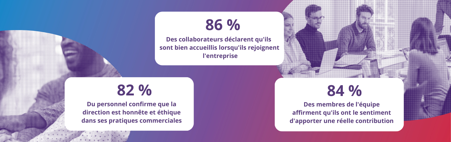 · 82% du personnel confirme que la direction est honnête et éthique dans ses pratiques commerciales