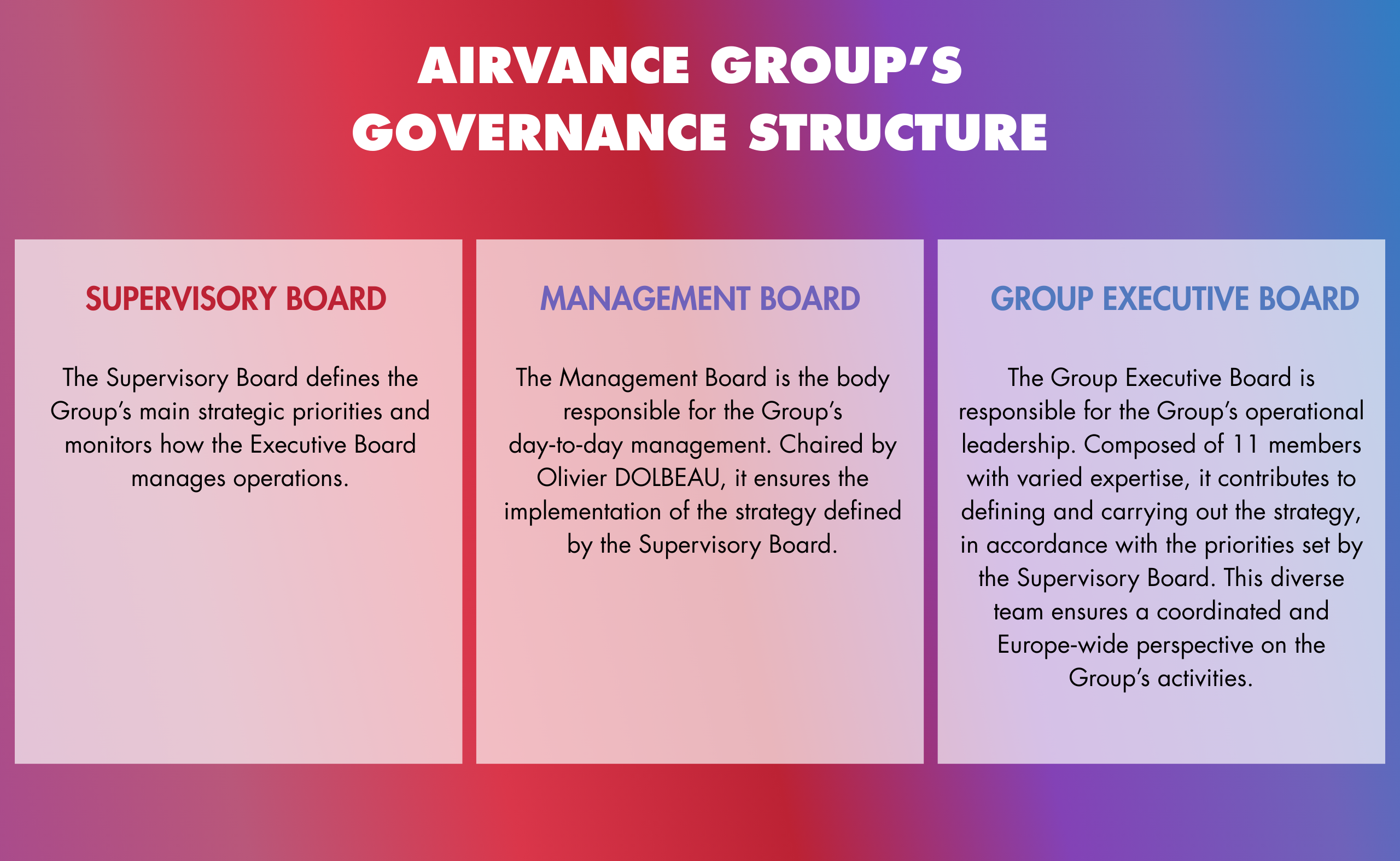 AIRVANCE Group has adopted a modern and balanced governance structure, combining the advantages of a family business with those of an international group.